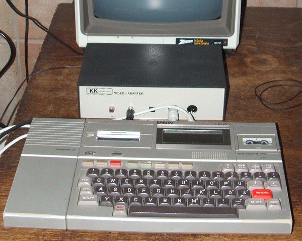 Der Video-Adapter heißt EVA (EPSON Video Adapter) und wurde von der Firma KK-Systems in den 80-er Jahren gebaut. Ich habe so einen Adapter bisher nirgendwo wieder gesehen. Von EPSON wurde ein Video-Adapter zwar im Handbuch erwähnt, wohl aber in Deutschland nicht angeboten. Herr Klaus Kälberloh (vb-klaus[Klammeraffe]gmx.de) war derjenige, der diesen Adapter entwickelte und baute, er ist mittlerweile über 70 Jahre alt und die Elektronik und das Jonglieren mit Bits und Bytes beherrscht er immernoch aus dem ff. Er lebt jetzt im Land Brandenburg und eines Tages fand er durch Zufall seine Arbeit von vor über 20 Jahren auf diesen Internet-Seiten wieder und erzählte mir so einiges aus der damaligen Personal Computer Gründerzeit in der Bundesrepublik Deutschland, u.a. zur EVA:Herr Kälberloh ist sehr nett und ich bin ihm sehr dankbar, denn er nahm sich viel Zeit um einen ziemlich hartnäckigen Fehler, den mein Adapter nach den Jahren nun doch bekommen hatte (einige Zeichen wurden manchmal falsch dargestellt), zu reparieren. Ich bekam von ihm u.a. auch ein geregeltes Ladegerät für den HX-20, welches dafür sorgt, das der Akku nicht überladen werden kann. Auch dieses Gerät entwickelte und baute er bei KK-Systems.