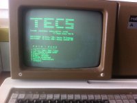 DFÜ 2015 Begrüßungsbildschirm der TECS-BBS bei einer Einwahl mit 300 baud im Jahr 2015