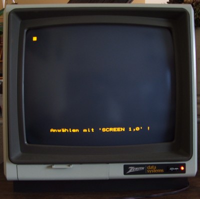 Mittlerweile habe ich für meinen HX-20 noch einen - sehr selten - Videoadapter mit zeitgenössischem Monitor bekommen. Das Besondere an dieser Technik ist, das der HX-20 den Bildschirminhalt seriell überträgt. Die Adapter-Box wandelt das Signal dann in ein Video-Signal um.