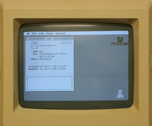 Nun wurde mir erst einmal klar, das der Mac plus ja noch eine Maus braucht, damit die schöne grafische Oberfläche auch benutzbar wird. Die Maus folgt als eine der ersten ihrer Art noch anderen Abfrageprinzipien, ist dadurch nicht mit einer herkömmlichen Maus kompatibel und war ziemlich schwer zu bekommen (wer sich einen Mac plus zulegt, sollte darauf achten, das sie unbedingt dabei ist!) Und weil wir gerade dabei sind noch ein Hinweis für "Mac plus Anfänger": Hat man kein Betriebssystem, kann man ein freies OS 7.x aus dem Internet (da gibt es eine sehr schöne Seite: âKnubbelmacâ) herunterladen. Das Abbbild ist aber zunächst erst einmal nur für HD-Disks. Der Macintosh plus will aber keine HD sondern nur DD Disketten haben. DD-PC Laufwerke gibt es zwar, aber es gibt kein Image für Mac Disketten im DD Format für PC´s, da das Mac-800k Format mit dem PC Controller nicht schreibbar ist (scheinbar ähnlich wie beim Victor Sirius). Letztlich ging es bei mir so, das ich das System mit meinem alten Macintosh LCII auf DD-Diskette schreiben konnte. Der LCII hat zwar ein HD-Laufwerk, kann aber damit auch 800k - DD Disketten schreiben.